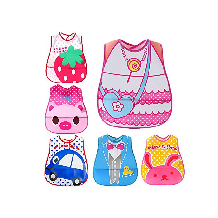 √베이비 식사용 방수 에이프런입니다.사내 아이용,소녀용 공6점 세트.대상 연령0.5~4세