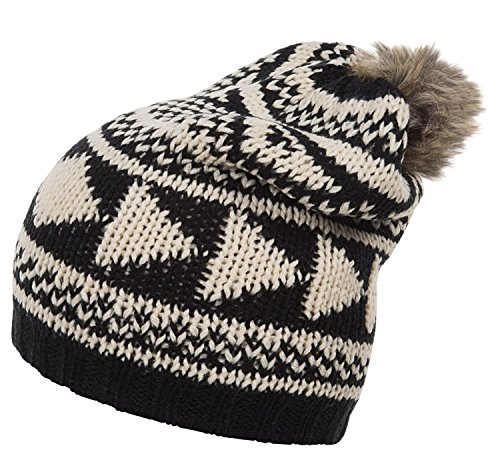Product Description Cozy and cute, Woolrich's geometric hat stands out with an extended brim for slouchy style, complete with a pretty geometric two-tone pattern and a silky faux-fur pom on top. 0