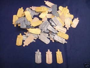 Binding : Toy Product Description this listing is for 100 baby bottles padded appliques they are made of satin and can be used as confetti they are embossed with a detail , the package contains a mix of white, blue and yellow baby bottles they are 7/8 of an inch tall and 3/8 inch across we consolidate all shipments 0