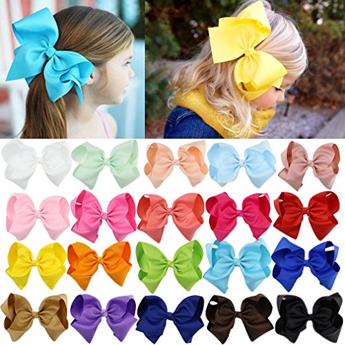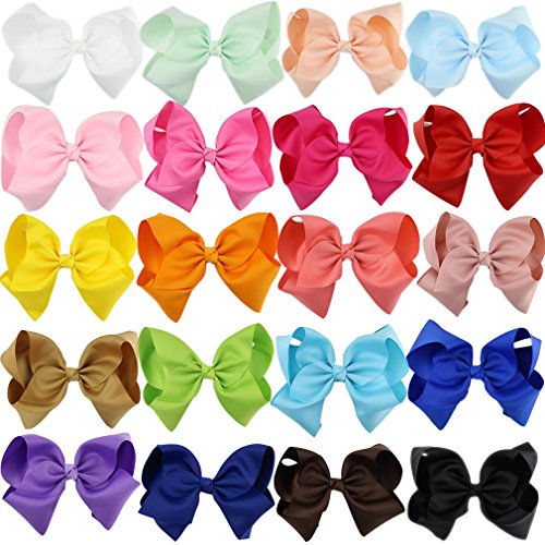 DEEKA 20 PCS Multi-colored 6" Hand-made Grosgrain Ribbon Hair Bow Alligator Clips Hair Accessories for Little Girls
