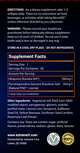 -. Title : NerveQQ Ultra Advanced Neuropathy Nerve Support Formula. 100mg of Ubiquinol (QH) plus Natural PQQ 20mg (Vegetarian Softgels)