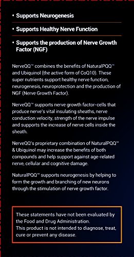 -. Feature : Advanced NERVE Function and Health Support / Supports Neurogenesis, Healthy Myelin Sheath, Nerve Conduction and Nerve Cells Functions / Supports the production of Nerve Growth Factor (NGF) / NerveQQ's proP.R.Ietary combination of NaturalPQQ plus Ubiquinol may increase the benefits of both compounds and help support against age-related nerve, cellular and cognitive damage. / NaturalPQQ supports neurogenesis by helping to form the growth and branching of new neurons through the stimulation of nerve growth factor.