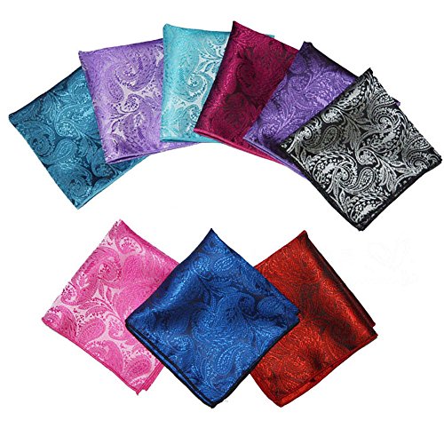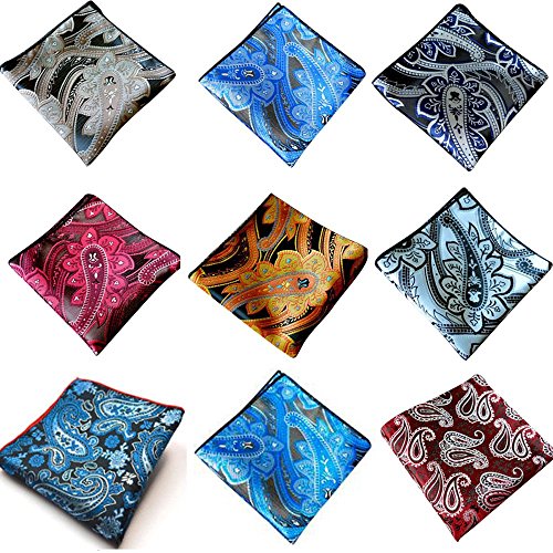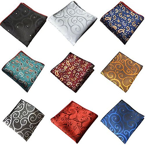 Weishang Mens Printing patterns Pocket Square Handkerchief Wedding Party(pack of 9)