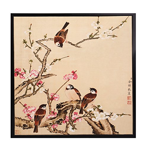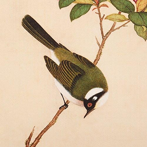 On the flower branch there were tipple bees,butterflies,dragonflies,grasshoppers,tit,thrush,oriole,ribbon and so on.This picture was elegant and bright with a simple composition.It had a delicate brushwork in drawing flying butterflies,grasshoppers and the birds was accurate that showed the artist has a solid grounding sketch.