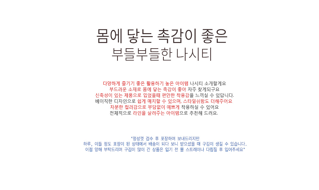 .같은 사이즈라도 체형에 따라 핏감이 조금씩 다를 수 있습니다.