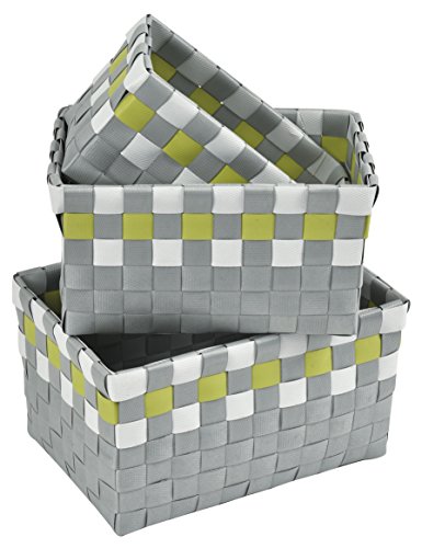 EVIDECO 8400 Set 3 Checkered Woven Strap Storage Baskets, Gray/Green