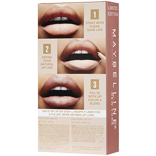 This Maybelline Gigi Hadid kit features matte lip liners and lipsticks in a collection of limited edition shades created by Gigi herself. Apply the nude lip liner and golden brown lipstick for an East Coast Glam look. Gigi recommends reapplying liner after applying lipstick to redefine the silhouette and to create the perfect pout. "The lip colors are fun and so easy to go from day-to-night!" - Gigi HadidFeature