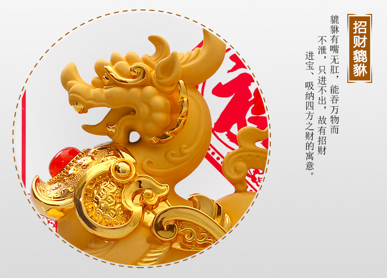 古书上说的一种凶猛的瑞兽。貔貅是以财为食的,纳食四方之财。中国传统是有“貔貅”的习俗,和龙狮一样,带来欢乐及好运的作用。