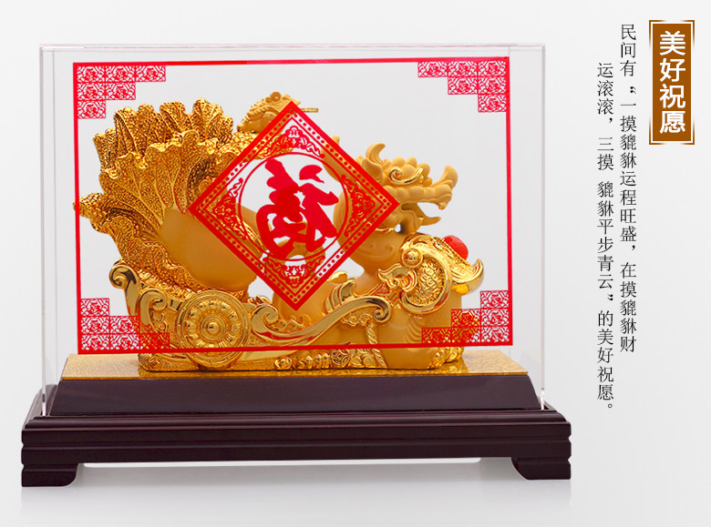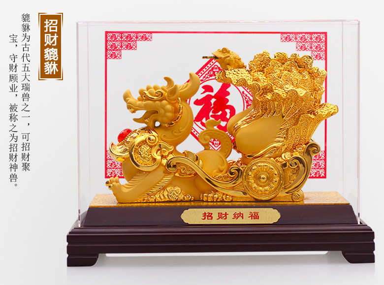 招财貔貅摆件 绒沙金白菜店铺开业礼品办公室桌面工艺品商务礼品