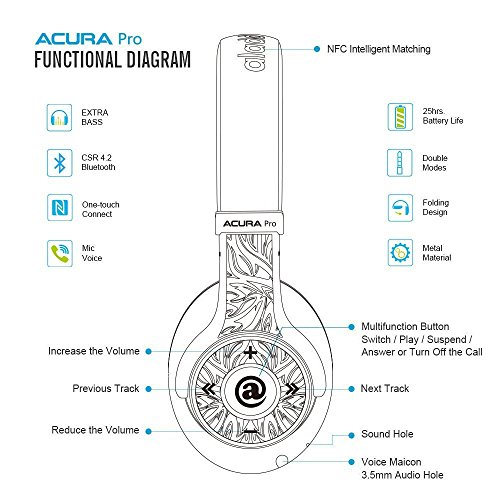 Aladdinaudio Bluetooth Kopfhorer 4.2 kabellose Over Ear Stereo Wireless Professionelle Hi-Fi Headset Aptx 25 Stunden Spielzeit mit Mikrofon und Wired Mode 10m Reichweite fur NFC, D