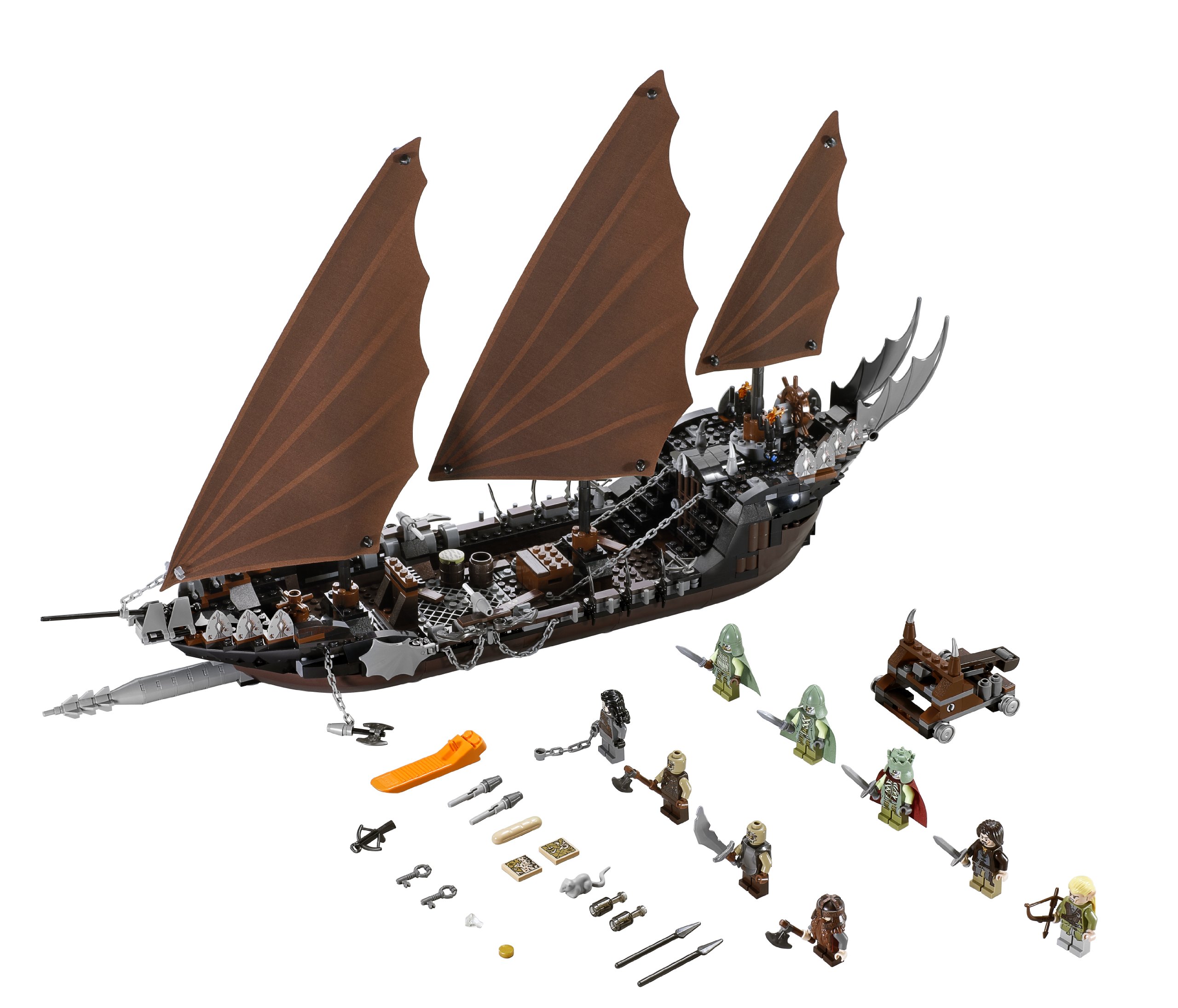 There are three big sails on the pirate ship, a removable rear section, a pirate of Umbar, a crossbow, plenty of weapons! I will lead the king and soldiers shining in darkness and battle!