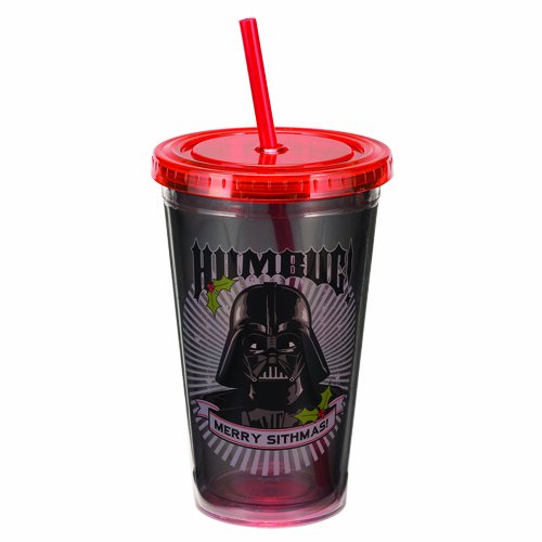 Vandor 99214 Star Wars Darth Vader "Humbug" 18 oz Acrylic Travel Cup with Lid and Straw, Black, Green, and White