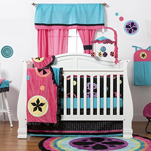 One Grace Place Magical Michayla Infant Crib Bedding Set, Black/Pink/Turquoise