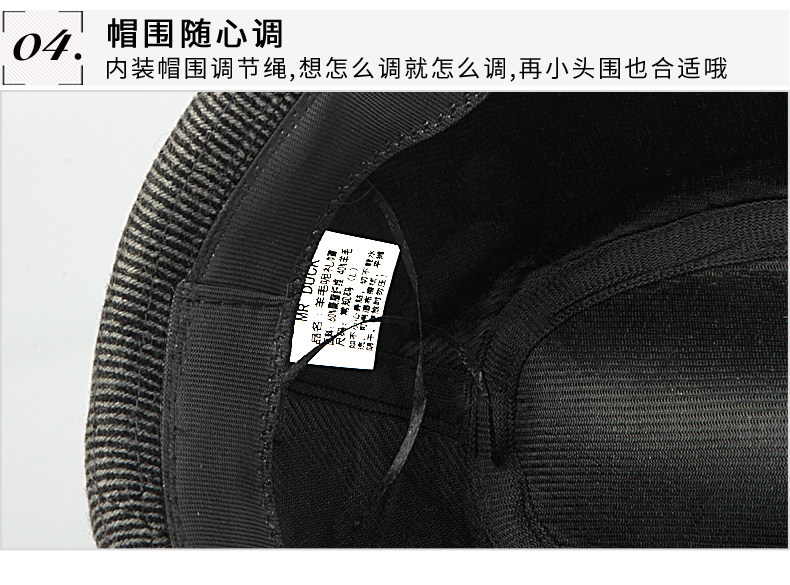 【サイズ調節】:帽周りの長さは約56-58cmです。非常に高いニーズのサイズがあり、内側にサイズ調節可能なテープがついています。もちろんデザインだけではなく、ファッションで実用的な紳士スタイルのハットです。