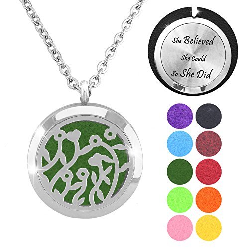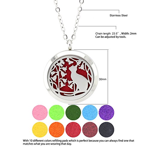 The design of the necklace is very fashionable and can match most of your outfit. Comes with 10 different refill pads that are different colors which is perfect because you can always find one that matches what you are wearing that day.