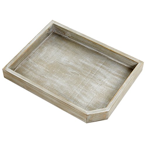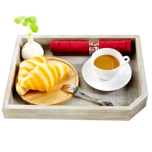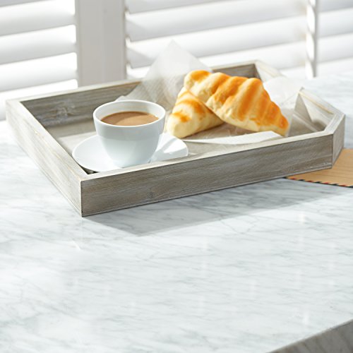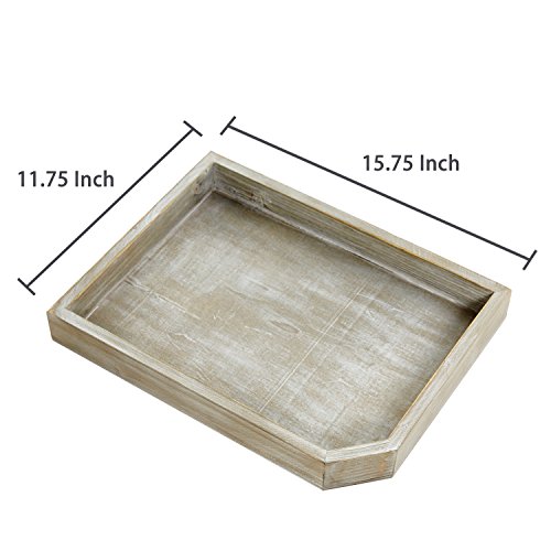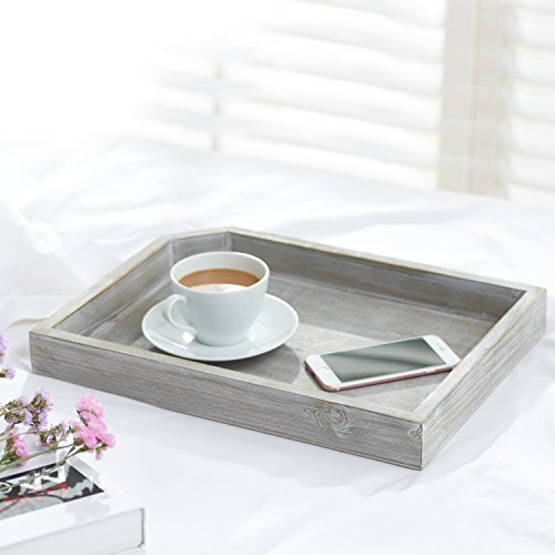 MyGift Rectangular Wood Serving Breakfast Tray, Decorative Display Holder with Rustic Gray Finish