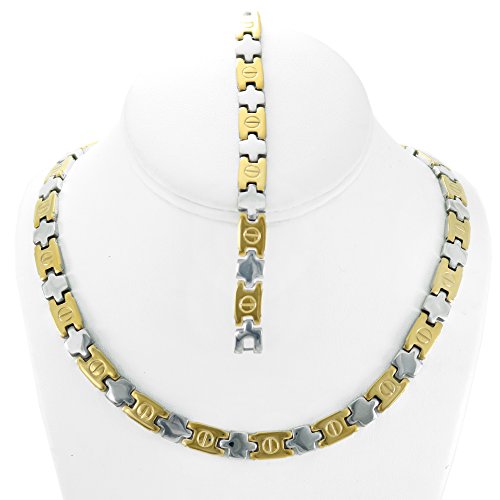 This classic hugs and kisses stampato set is made of high quality stainless steel. Wear this versatile set with any outfit for any occasion. Perfect gift item, amazing quality at an excellent price. Huge bargain. High quality stainless steel has high resistance to rust, corrosion and tarnishing, which requires minimal maintenance. Stainless steel is one of the most bio-compatible metals, so stainless steel jewelry is amazingly hypoallergenic because of its anti-allergic properties. As one of the strongest of all jewelry metals, it does not oxidize and will be very durable. All makes it a top fashion accessory to complement your wardrobe with the sleek, contemporary styling offered by our stainless steel jewelry.Feature