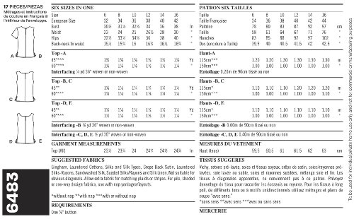 Suggested fabrics: Gingham, Laundered Cottons, Silks and Silk Types, Crepe Back Satin, Laundered Silks-Rayons, Sandwashed Silk, Sueded Silks/Rayons and Silk Linen; not suitable for obvious diagonals; for pile, shaded or 1-way design fabrics