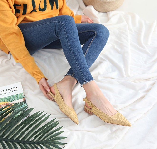 商品名:パンプス レディース ローヒール ポインテッドトゥ メッシュ スリングバック 2017 秋 冬 ファッション 靴 婦人靴