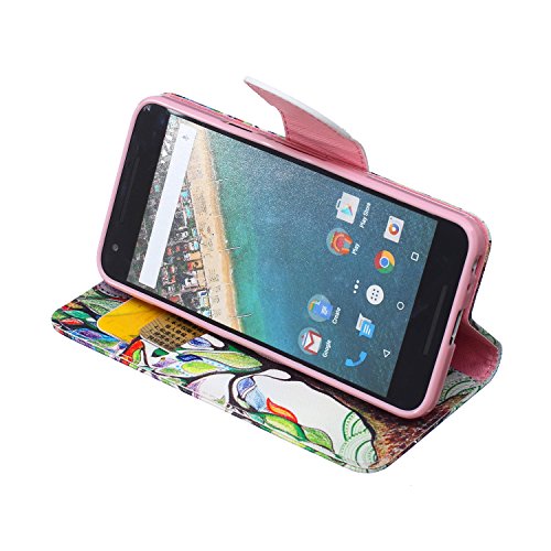 WALLET Style - Included 2 Card Slots And Money pocket - Carry around your ID, credit or debit cards, and cash without having to take your wallet with you.Built-in magnetic for secure closure.Stylish PU Leather Wallet Case for Nexus 5X
