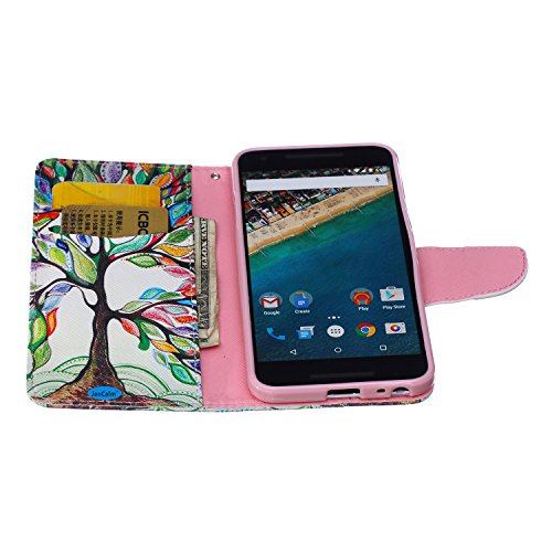 Nexus 5X Case,JanCalm [Kickstand] NEW Pattern Premium PU Leather Wallet [Card/Cash Slots] Protective Flip Case Cover for LG Google Nexus 5X (5.2-Inch) *Including-ONE Crystal Pen (Beautiful tree)