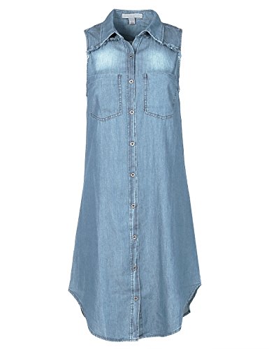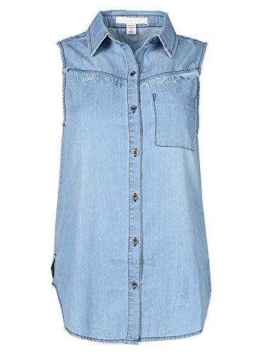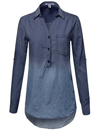 Throw it on top of anything, this chambray goes with any outfit. You can wear it even in cold weather by layering with a long sleeve under.