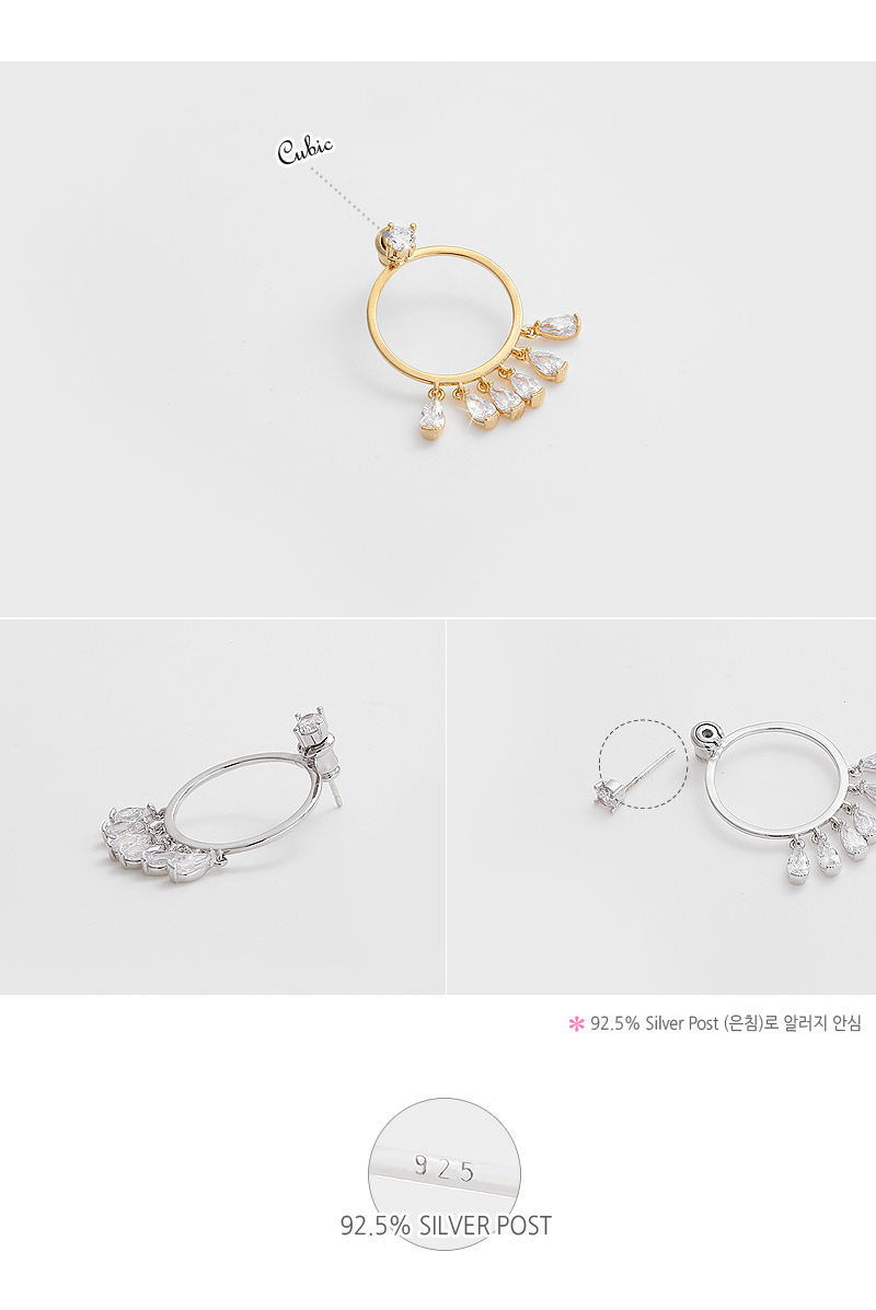 라운드 팬던트 아래로 찰랑이는 큐빅장식이 우아하고