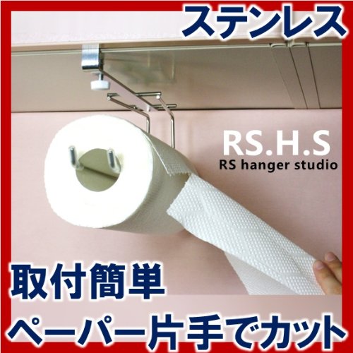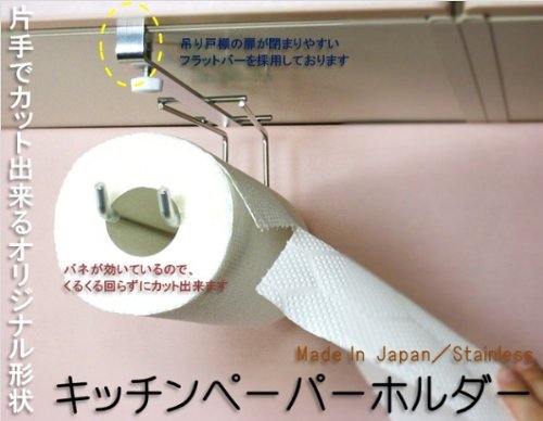 Kitchen paper holder with one hand cut 18-8 stainless steel drilling unnecessary made in Japan