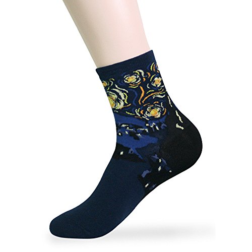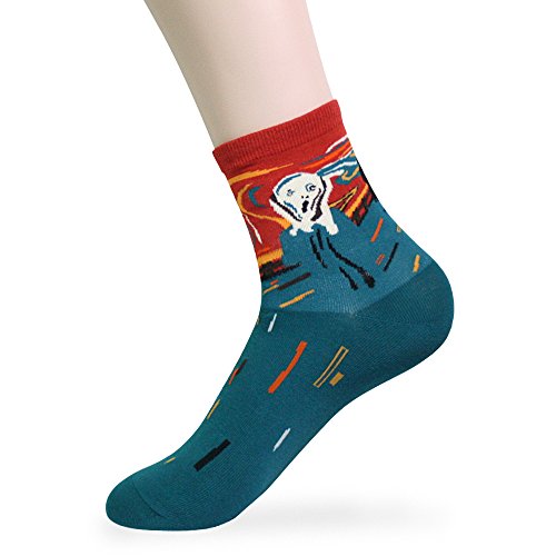 -. Title : KONY Women's Colorful Funny Famous Painting Art P.R.Inted, Rainbow Striped, Turn Cuff Patterned Cotton Crew Socks