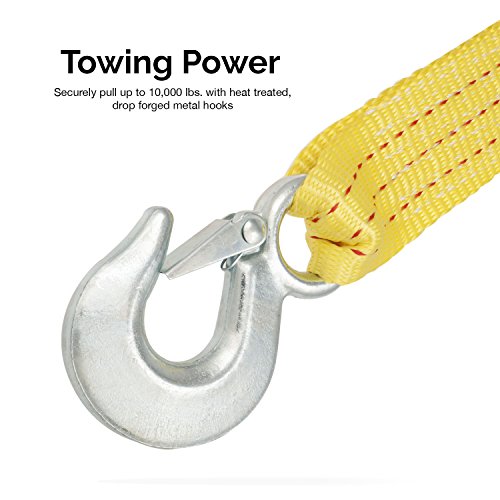 Neiko 51005A Heavy Duty Tow Strap with Safety Hooks | 2” x 20’ | 10,000 LB Capacity | Polyester