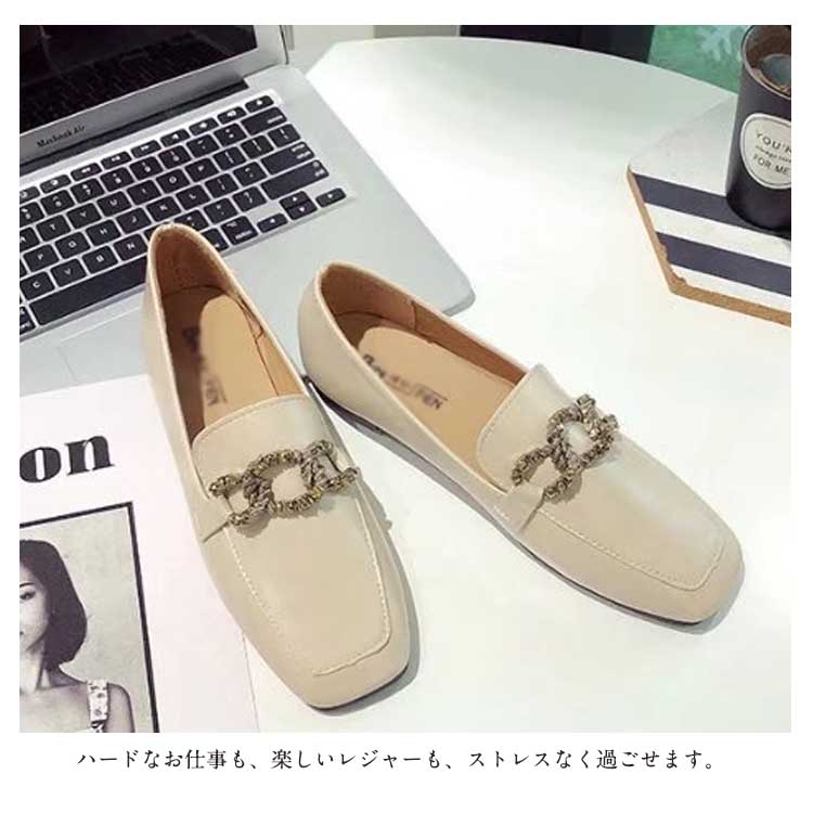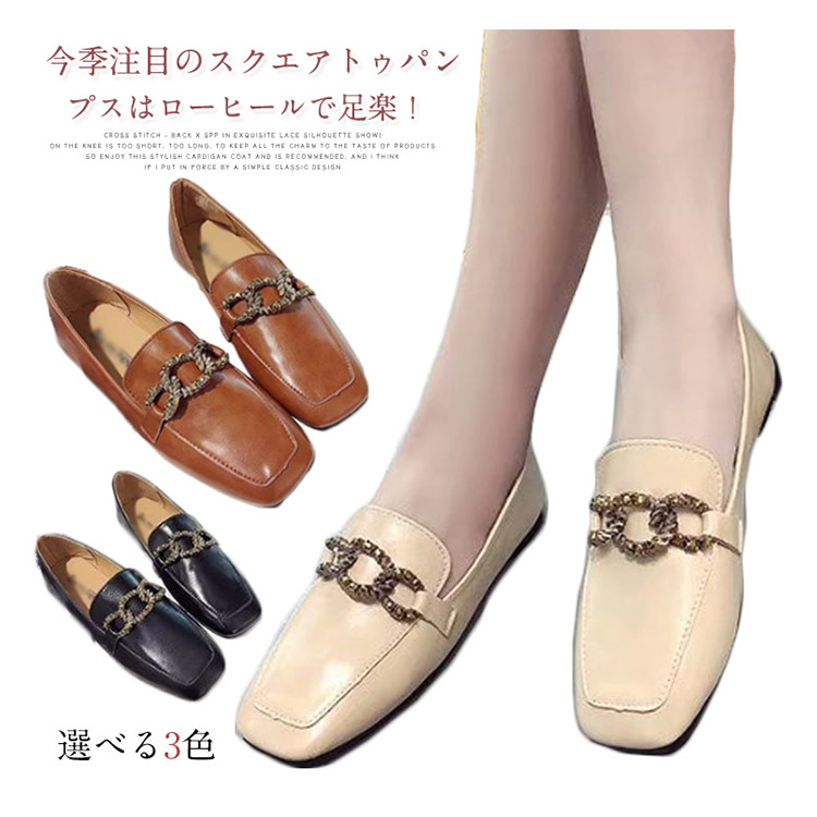 | 今季注目のスクエアトゥパンプスはローヒールで足楽!存在感をアピールするメタルベルトが上品で大人な印象を与えてくれます。ローヒールだから安定感があり、1日中歩きまわっても疲れにくい。履き心地も柔らかく、ぺたんこで楽に履ける。女性らしいカットラインとモードさをミックスした、デザイン性の高い美脚パンプス。大人っぽく、上品さのある合皮素材を使用します。ハードなお仕事も、楽しいレジャーも、ストレスなく過ごせます。 | |