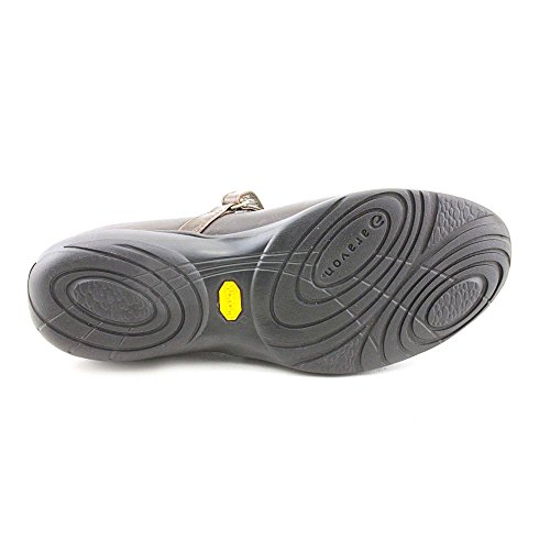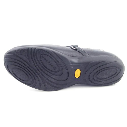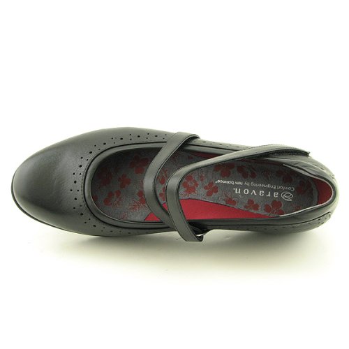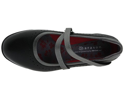 Amazon.com When you've got miles to go before you sleep, this fashionably practical leather flat from Aravon is just what you need to get you there. The luscious leather upper is incredibly soft to the touch and has a nicely padded collar for comfort and cushy, ergonomic insole for support and stability. The hook-and-loop instep strap adjusts to fit and is very flattering to boot, while the rubber sole lends shock absorbency, grip and durability to each step. 0