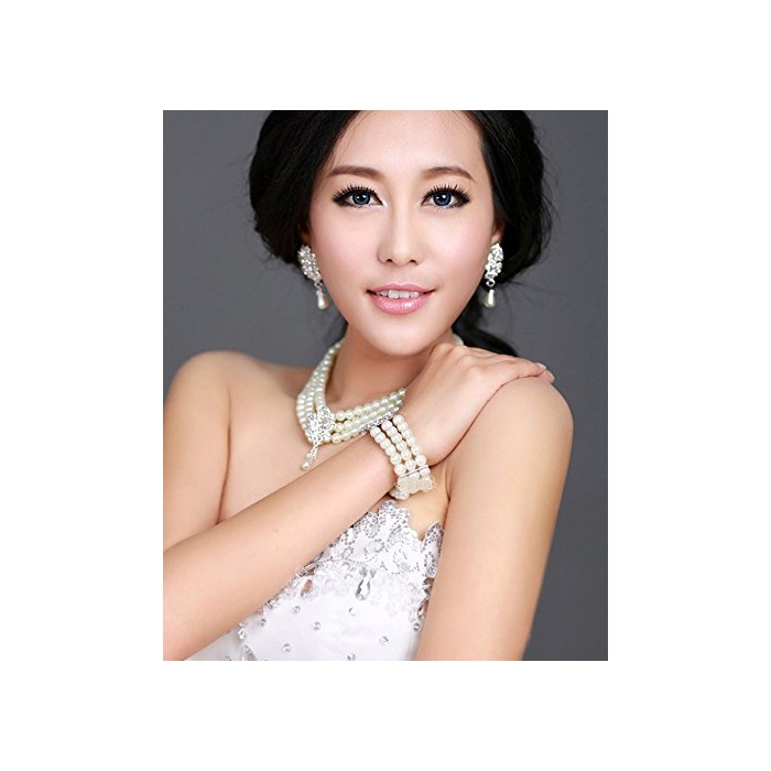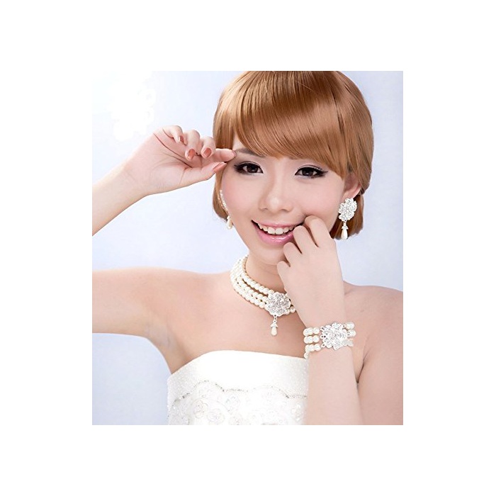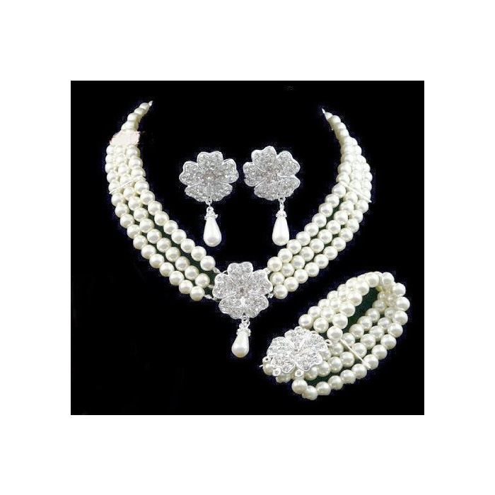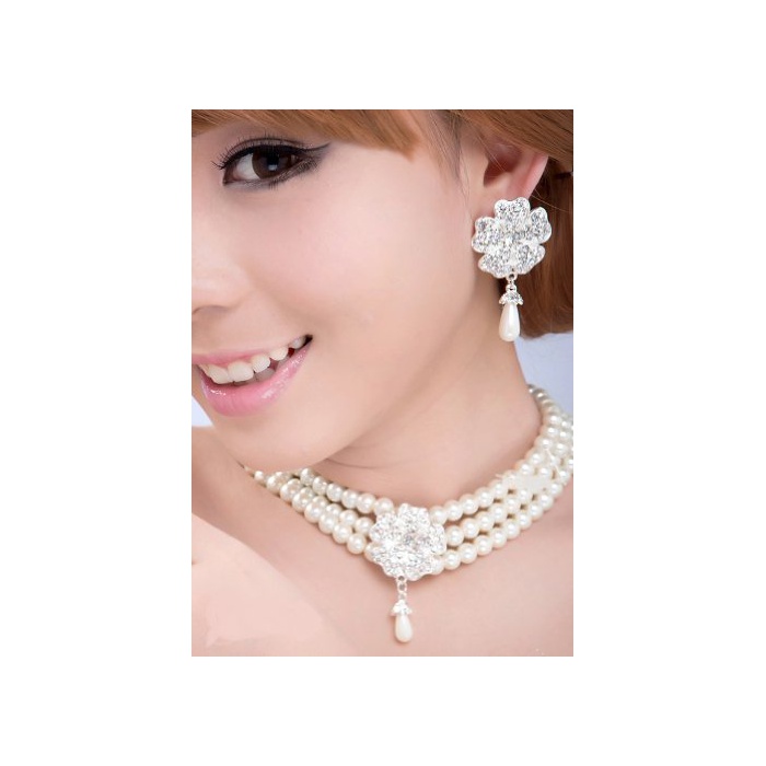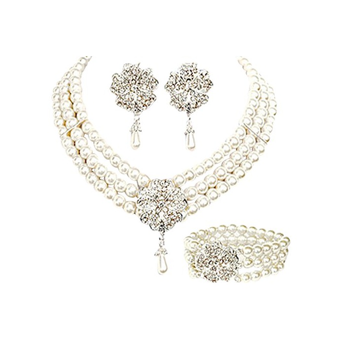 【(노 브랜드)무상표 상품품】고저스(gorgeous) 악세사리 펄 플라워 넥크리스 팔찌 귀걸이 3점 세트