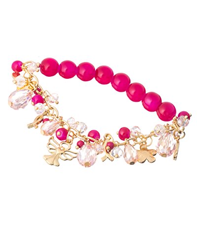 -. Title : Angel & Pink Ribbon Glass & Stretch Bracelet - Jewelry Nexus