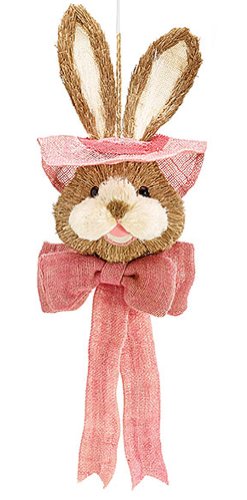 -. Binding : Kitchen -. Brand : CAS -. Color : Multicolor -. Feature : One hanging bunny decoration per order. / Bunnies feature matching hats and bows made of burlap, with straw faces and jute hanging strings / Bendable wired ears. / Each measures 32"H X 9"W X 4 1/2"D. / Sure to become a favorite Easter decoration for years to come! -. Label : CAS -. Manufacturer : CAS -. PackageQuantity : 1 -. ProductGroup : Home -. ProductTypeName : HOME -. Publisher : CAS -. Size : 32"H X 9"W X 4 1/2"D -. Studio : CAS -. Title : Easter Bunny Head Hanging Holiday Door Decoration-Pink, Blue or Green
