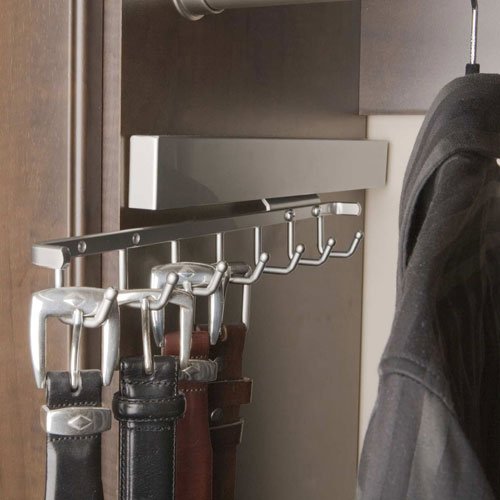 Binding : Kitchen Product Description -Durable high grade steel construction with an elegant brushed satin chrome finish -Designed for partitions at least 14" in depth -May be mounted on left or right side applications -5 generous hook allow for multiple hanging of most belts -Easy installation with included hardware 0