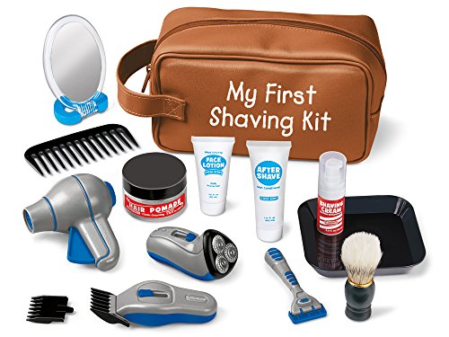 -. Feature : Kids pretend to groom like grown-ups--with accessories that have moving parts and fun features! / Pretend accessories include a vibrating electric razor, a whirling blow-dryer, hair clippers, a shaving brush and more! / Kit comes with 15 pieces in a handy zip-shut vinyl case with a built-in handle--so kids can take it anywhere / Case measures 9 3/4" in length / For ages 3-6 years