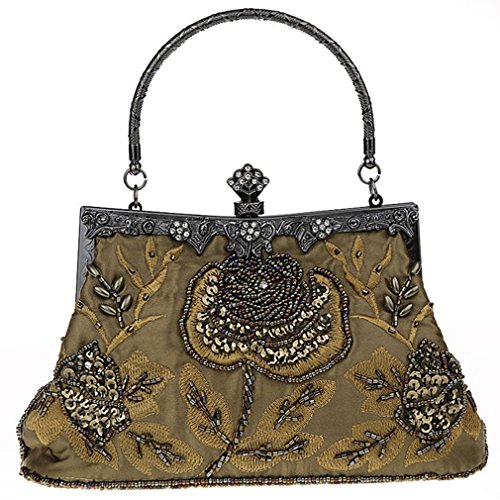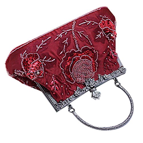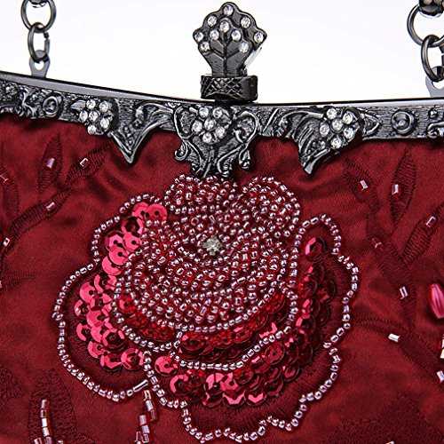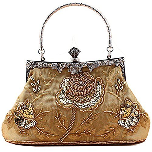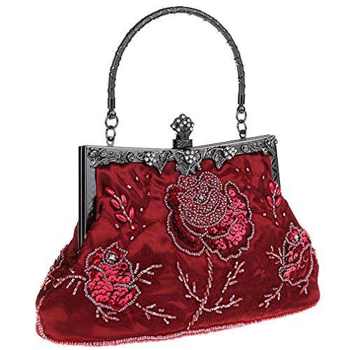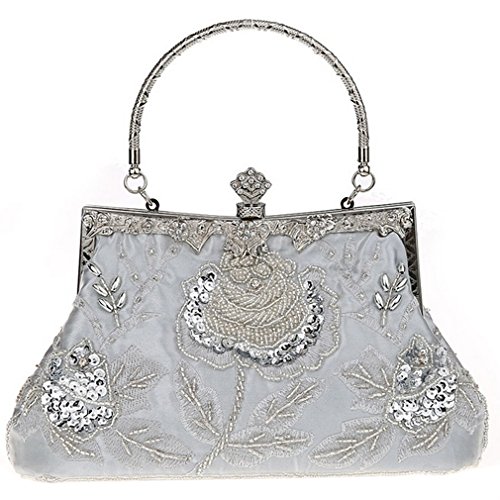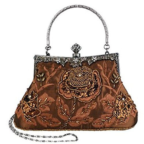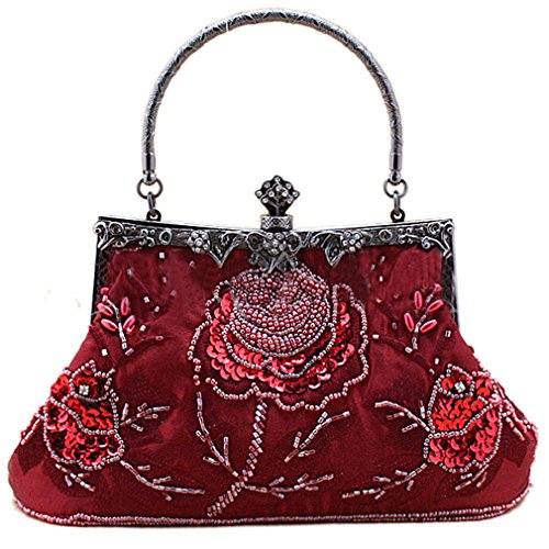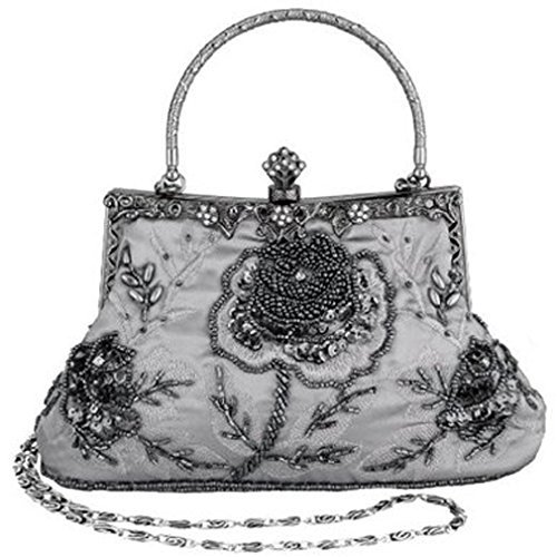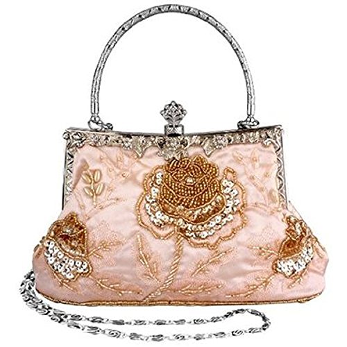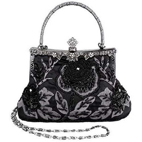If strikingly sweet is the look you're after for your next big event, this evening bag is the solution. The handmade sead beads, sequin and jewels outline a blossom rose design and really makes it pop. A hidden semicircular hard silver handle makes this clutch easy to carry by hand and on the arm. With its drop-in shoulder chain strap, it also offers the option of over-the-shoulder carrying. Rhinestones in the sterling silver clasp closure opens up to a fully lined pinstripe interior. Open flap pocket included to organize your most needed necessitates. This lovely little baguette from MG Collection is the perfect finishing touch to any ensemble when you're looking to add a little glamour. The antique design even carries on the back side of this handbag purse.