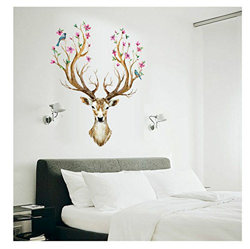-. Title : Oksale® 3D Plum Flower Deer Wall Sticker, 38 x 31 Inch, Kids Home Decor Sitting Living Room Bedroom PVC Removable Applique Papers Mural Decoration Decal