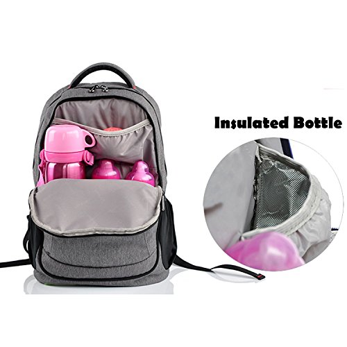 [Description] Fabric: Polyester Nylon with water repellent treatment. Durable fabric for you in daily use. Item size: L29*H43*W21cm/ L11.4*H16.9*W8.26 Inch; Its weight is about 0.66 KG. It is light for you to using by outgoing. Ultral large capacity with perfect compartment designed. 1 main pocket_ 1 zipper pocket_ 1 mesh pocket_ 3 insulated warm bottle bags_ and some other pockets for you. There is 1 laptop compartment for you to put 14inch computer . The backpack support is used breathable and thick mesh cotton so that you will feel cozy when you use it for a long time.