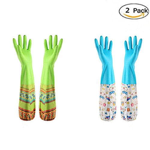 (Kunking)/Accessories/Gloves/DIRECT FROM USA/Household Latex Cleaning Gloves Waterproof Gloves with Lining 2 Pairs,Free get Cleaning cloth 2 Pack