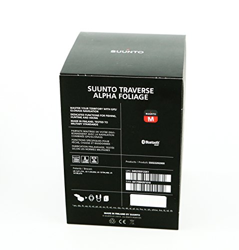 Studio : Suunto Publisher : Suunto Binding : Sports Product Description GO EXPLORE Suunto Traverse Alpha combines strong build quality with a full set of outdoor features. It is your guide in the wild, keeping you on track with GPS/GLONASS navigation. Specific fishing and hunting features provide useful tools for your activity, including moon phase calendar, shot detection, sunrise alert, weather trend, and red backlight for nighttime use. Plan your routes and keep a diary of your fishing and hunting trips with Suunto's Movescount.com. PRODUCT HIGHLIGHTS Master your territory with GPS/GLONASS navigation Dedicated functions for fishing, hunting and hiking Made in Finland, tested to military standards TESTED TOUGH Every new Suunto product goes through rigorous testing during development both in the laboratory and out in the field. In addition to our internal testing, we let independent test laboratories put our products to the limit. See how Suunto Traverse was tested according the military standards (MIL-STD-810G). Watch the video now. EY FEATURES Hiking, Fishing and Hunting modes Sunrise-sunset times and alerts Fishing and hunting specific POI types Red backlight, Night Vision Goggle compatible GPS and GLONASS for route and POI navigation Real-time breadcrumb view of the recorded track Tracking for speed, distance and altitude Route planning in Suunto's Movescount.com with topographic maps Route preview and route altitude profile on the watch Weather trend and storm alarm Compass Backlight in flashlight mode Vibration alarm GPS time update Daily, weekly, monthly and yearly activity tracking of steps and calories Mobile notifications Compatible with Suunto Movescount App (iOS) Please note: Android compatibility Traverse Alpha will be added in the next Android release. The release is currently being tested and some additional fixes are needed before it can be released. We apologize for the delay in the availability of the Android support. 0