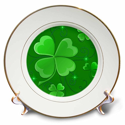 3dRose cp_11677_1 This Design is of Some Lucky Shamrocks on a Green Background Just in Time for St Patrick's Day Porcelain Plate, 8-Inch