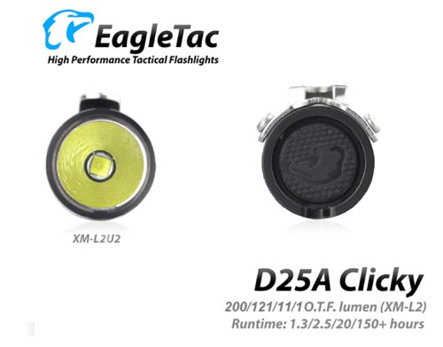 EagleTac D25A Clicky 200 Lumens Cree XM-L2 U3 Pocket Light, LumenTac Battery Organizer, Cool White
