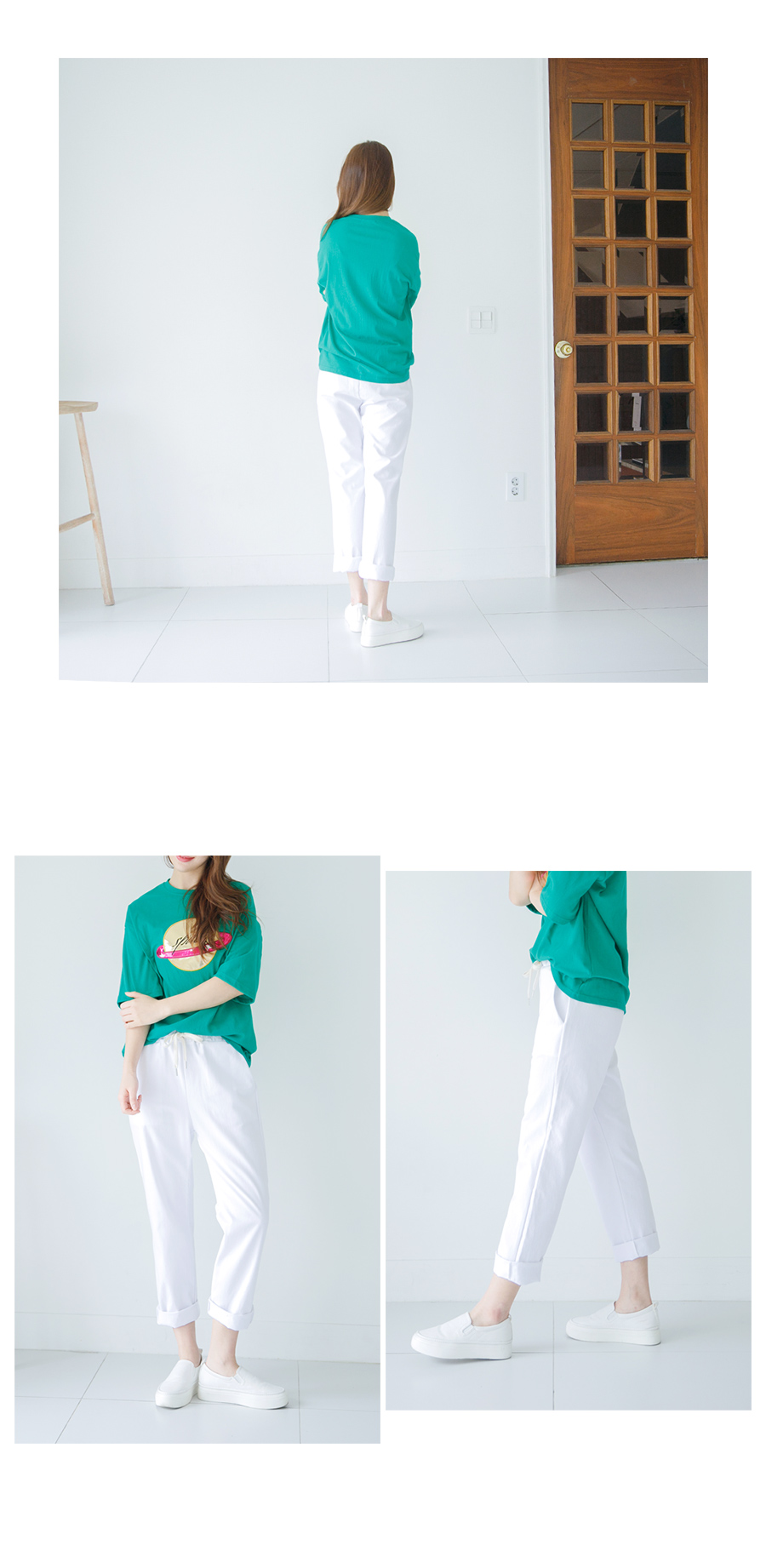 밑단 한,두번 롤업해주시면 좀 더 경쾌하고 가벼운 느낌으로 스타일링 가능하답니다^^ 블랙, 베이지, 아이보리 모두 기본으로 입기 좋은 컬러감이라 다양하게 구매하셔도 후회 없으실 거예요~ 160cm 기준으로 발 끝선정도 오는 길이입니다