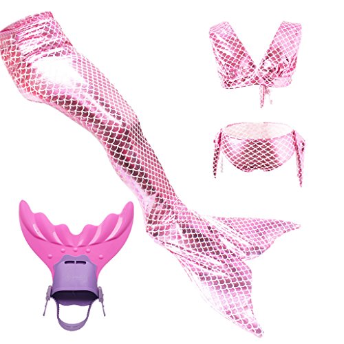 These are 4 pcs Swimming Set, includes the 1 Top, 1 Panties, 1 swimable tails 1 mono fin