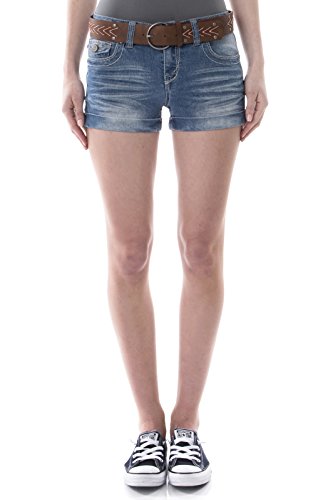 -. Title : WallFlower Juniors Belted Rolled Cuff Denim Short Shorts