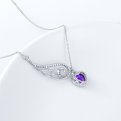 -. Title : 925 Sterling Silver Cubic Zirconia Guardian Angel Wing Heart Charm Pendant Necklace Gift for Women, 18"