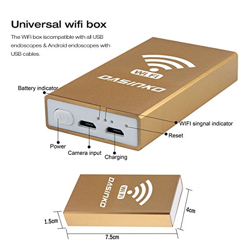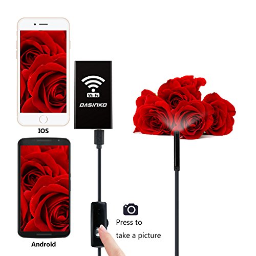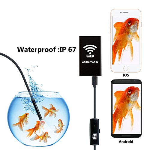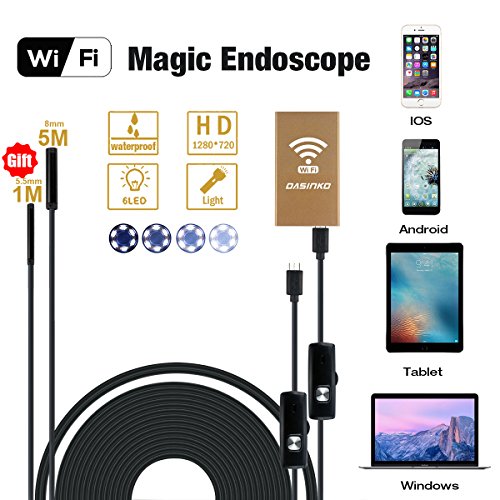Wireless Endoscope, DaSinKo 2 in 1 WiFi Borescope Inspection Camera 2.0 Megapixels 6 Leds 5M Rigid Cable with 1M flexible Cable IP67 Tube Waterproof HD Snake Camera,Gold
