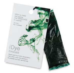 Available in a wide variety of colors (for all natural fabrics (cotton, silk, wool, linen and rayon) and polyesters and nylons). There are also two laundry aids: Color Remover which will remove or lighten a color and brighten whites and Sun Blocker which, when added to the wash cycle will penetrate clothing and block harmful UV rays from the sun. iDye comes in a packet that dissolves in water which means there is no handling of messy dye powders. Just throw the dye packet in add salt and run through the wash cycle. It is ultimately the easiest way to get gorgeous color! Packets weigh 14 gms and will dye 2-3 pounds of fabric each.Feature
